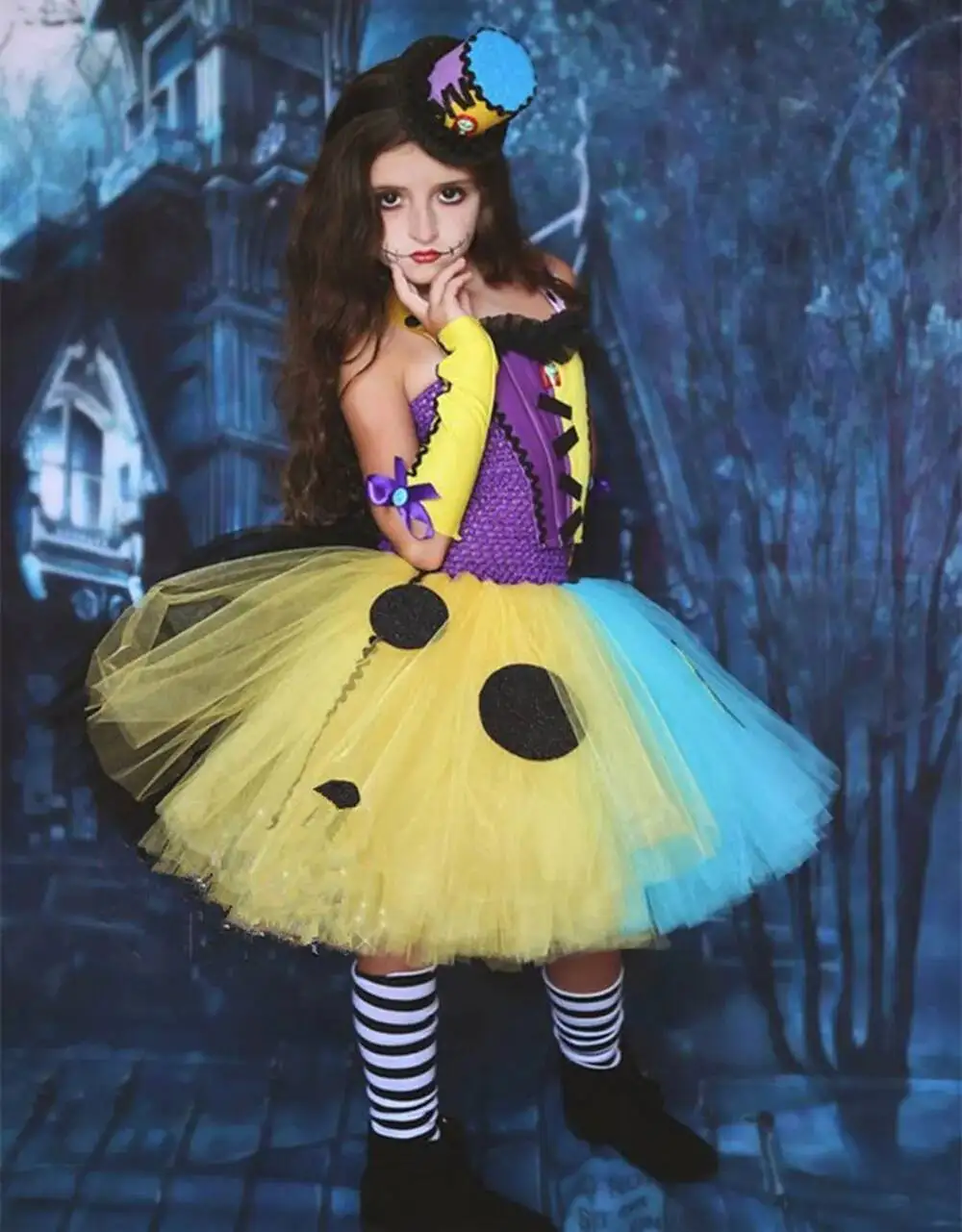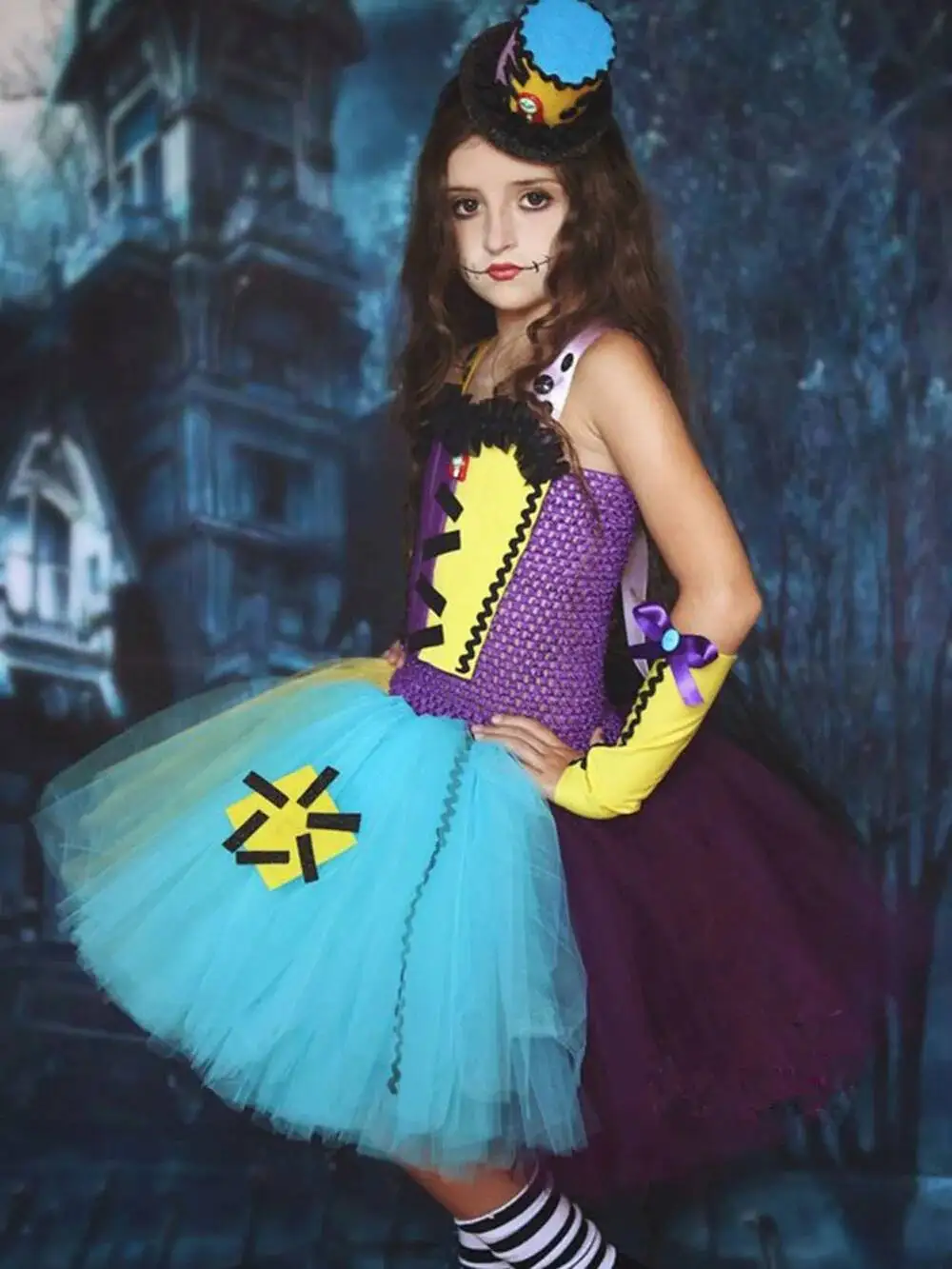 Theme: Nightmare Before Christmas Sally Scary Halloween Dress Up Costumes for Baby Girls Kids 1-14 Years. Material: High Quality Nylon Tulle Strips, Elastic Crochet Top. Color: Purple, Yellow, Skyblue. Occasion: Halloween, Carnival, Jungle Safari, Birthday, Party, Christmas, Photography, Dance, Performance, Holiday, New Year, Prom, Pageant, Xmas, Festival, Easter, Carnavil, Wedding, Valentines, First Communion, Flower Girl, Baptism, Thanksgiving, Fancy Masquerade Party etc. Tips: 1.Customized order and Dropshipping Order are both welcomed, Custom design/ color /size/ idea are all acceptable. 2. This Children Halloween Sally Horror Tulle Dresses with soft lining inside, and also add more tulles, so the dress is much more fluffy. Below displayed tutu dress photos are all real. Please be assured to place order if you like it.