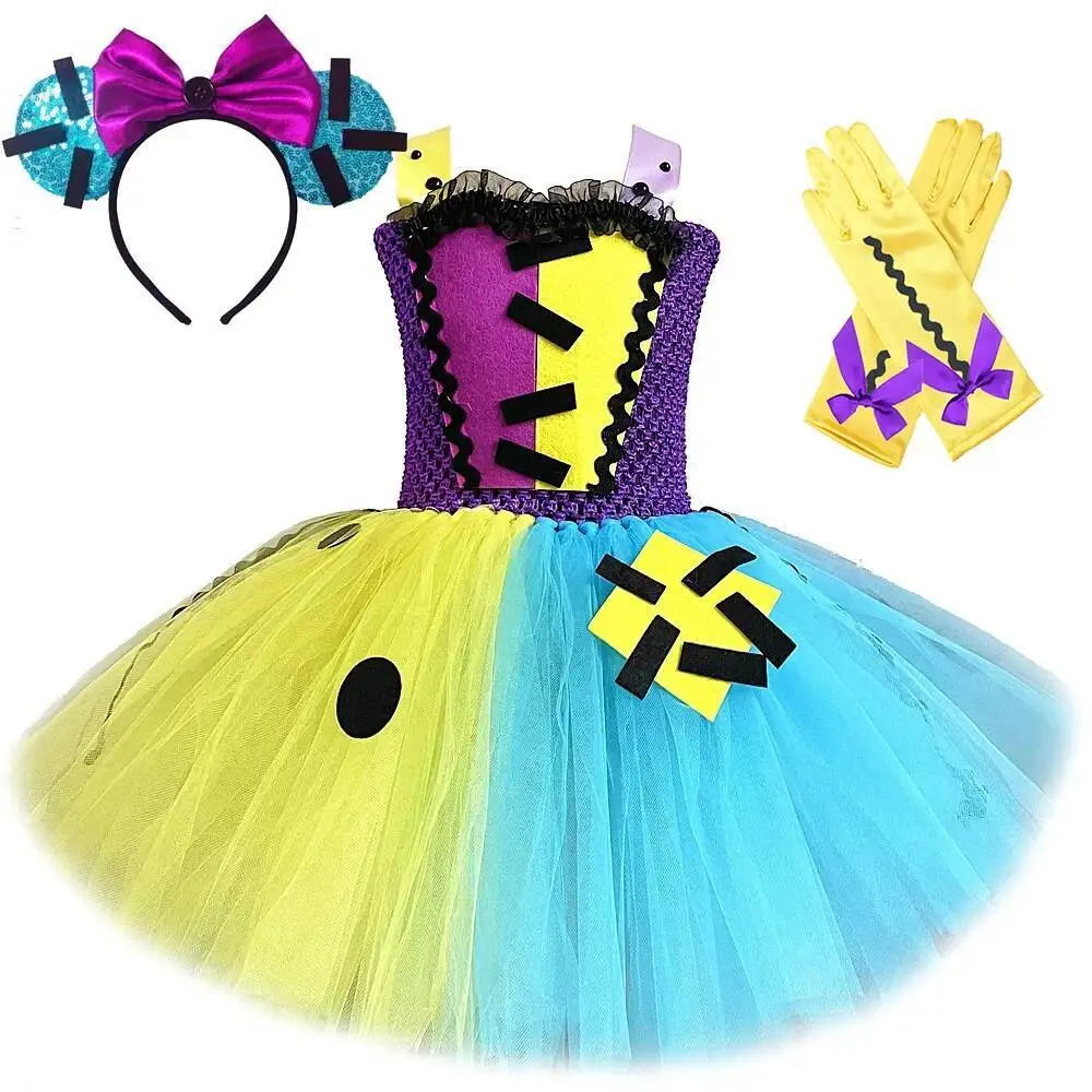 Horror Sally Halloween Costumes for Girls Nightmare before Christmas Scary Dresses Kids Carnival Party Fancy Outfit with Gloves